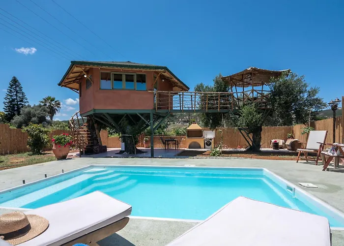 Eco Olive Treehouse Hotel ligt binnen 10 minuten rjden weg van German War Cemetery en nodigt gasten uit om te genieten van een terras.